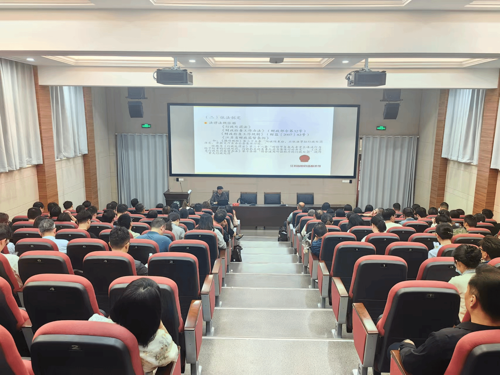 省财政厅政策法规处莫永庆处长讲授了《江苏省财政行政处罚裁量基准》,莫处长结合实际案例分析,鞭辟入里,受到参训学员热烈好评。
