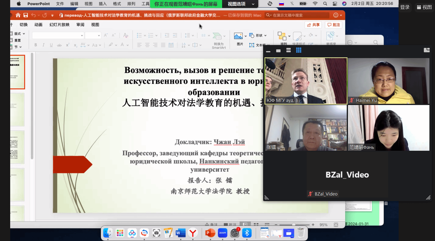 会上,张镭教授做了题为“人工智能技术对法学教育的机遇、挑战与回应”的学术报告。张镭教授的报告分为四部分内容,包括:人工智能技术在当前的发展;人工智能技术对法学教育的机遇;人工智能技术对法学教育的挑战;法学教育如何回应人工智能技术的发展。他向与会的国内外学者阐述了人工智能在法学教育中的应用与中国经验。范婧昭老师进行了报告的翻译并参与会议的交流,於海梅老师参与了会议的研讨交流环节。