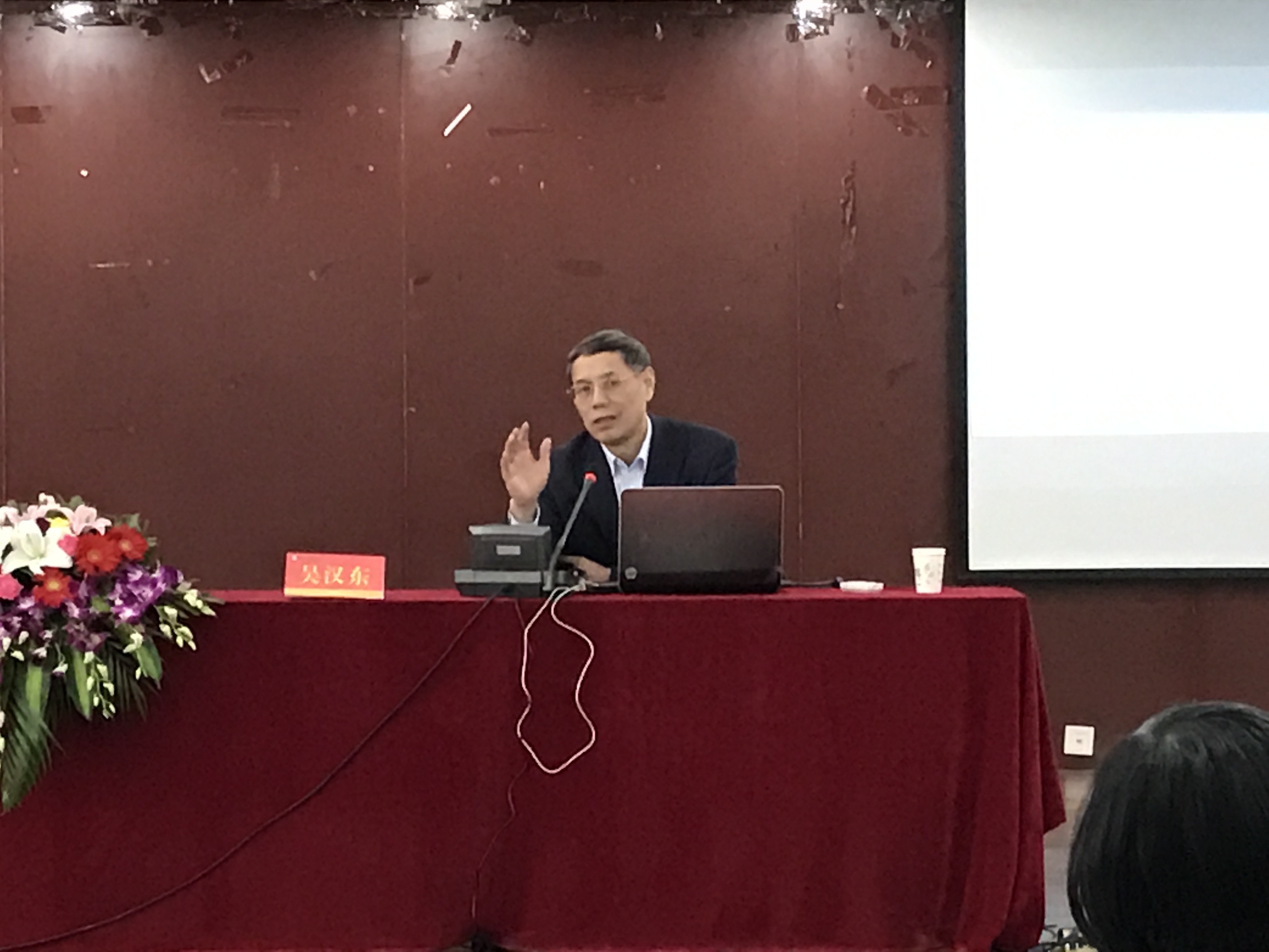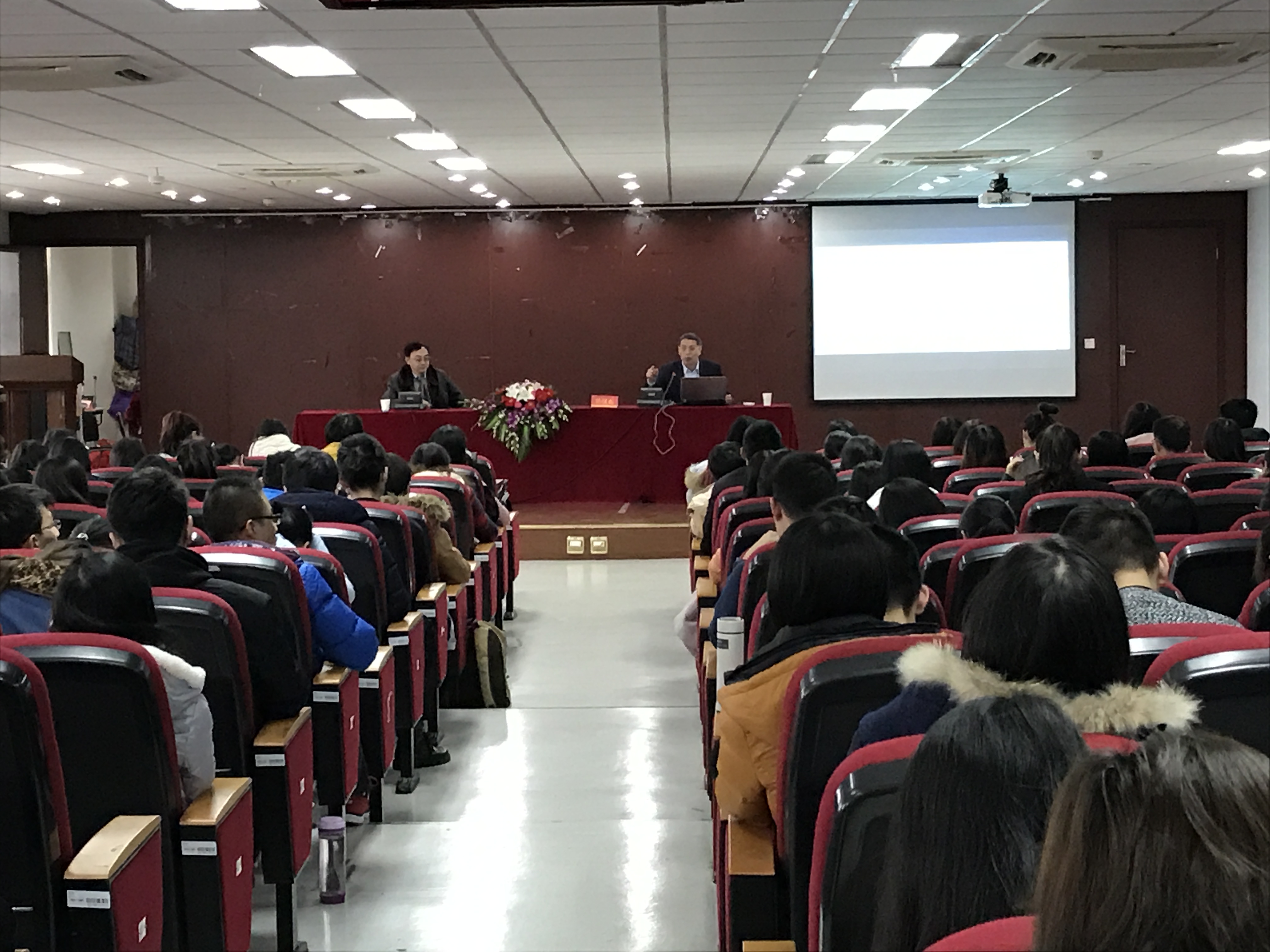 眭鸿鸣教授、马晓燕副教授出席并主持了该讲座。部分师生到场参与,认真聆听并与吴教授展开互动。